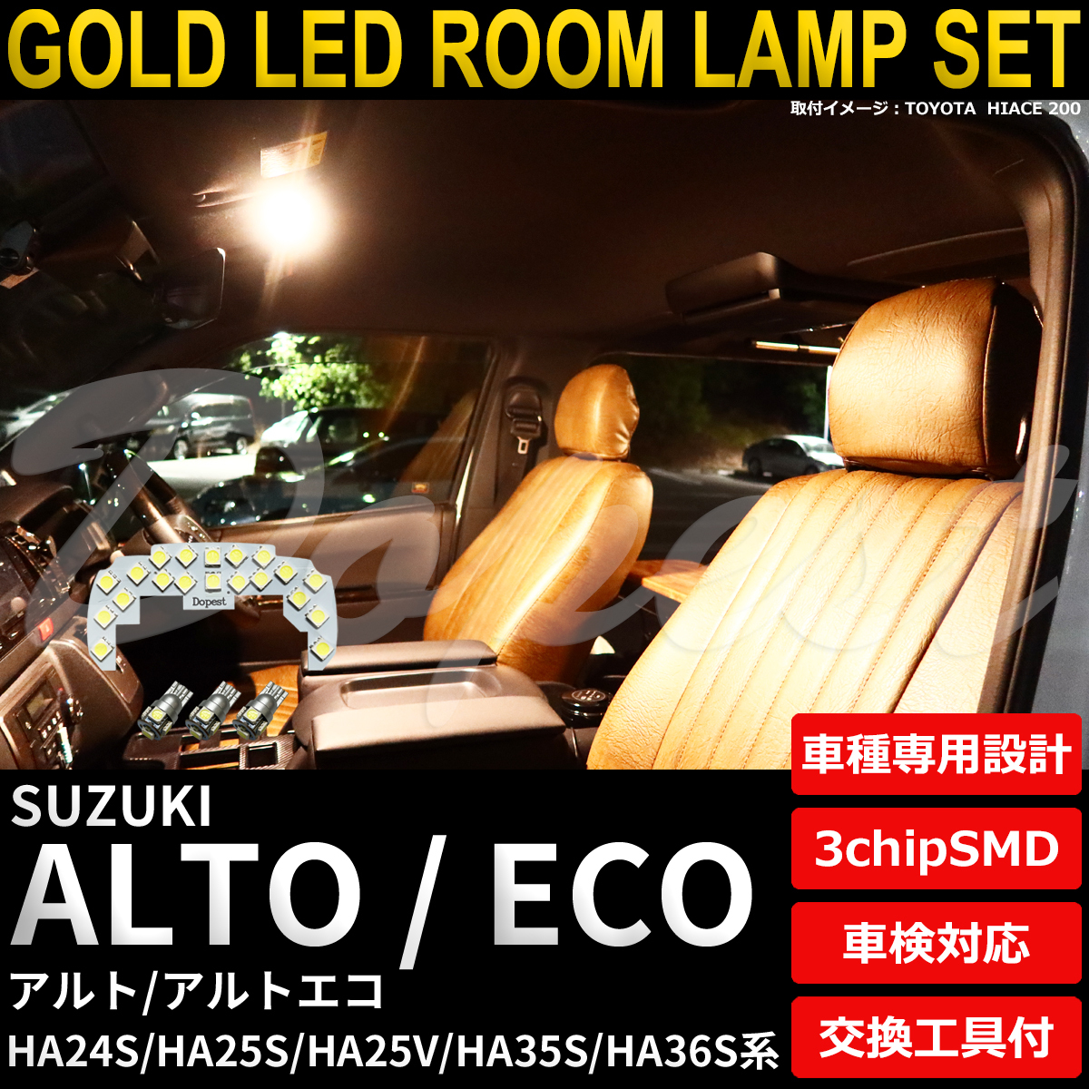 > アルト/エコ LEDルームランプセット HA24S/25S/25V/35S/36S系 室内灯 3250K電球色 専用設計 車検対応 車内灯
