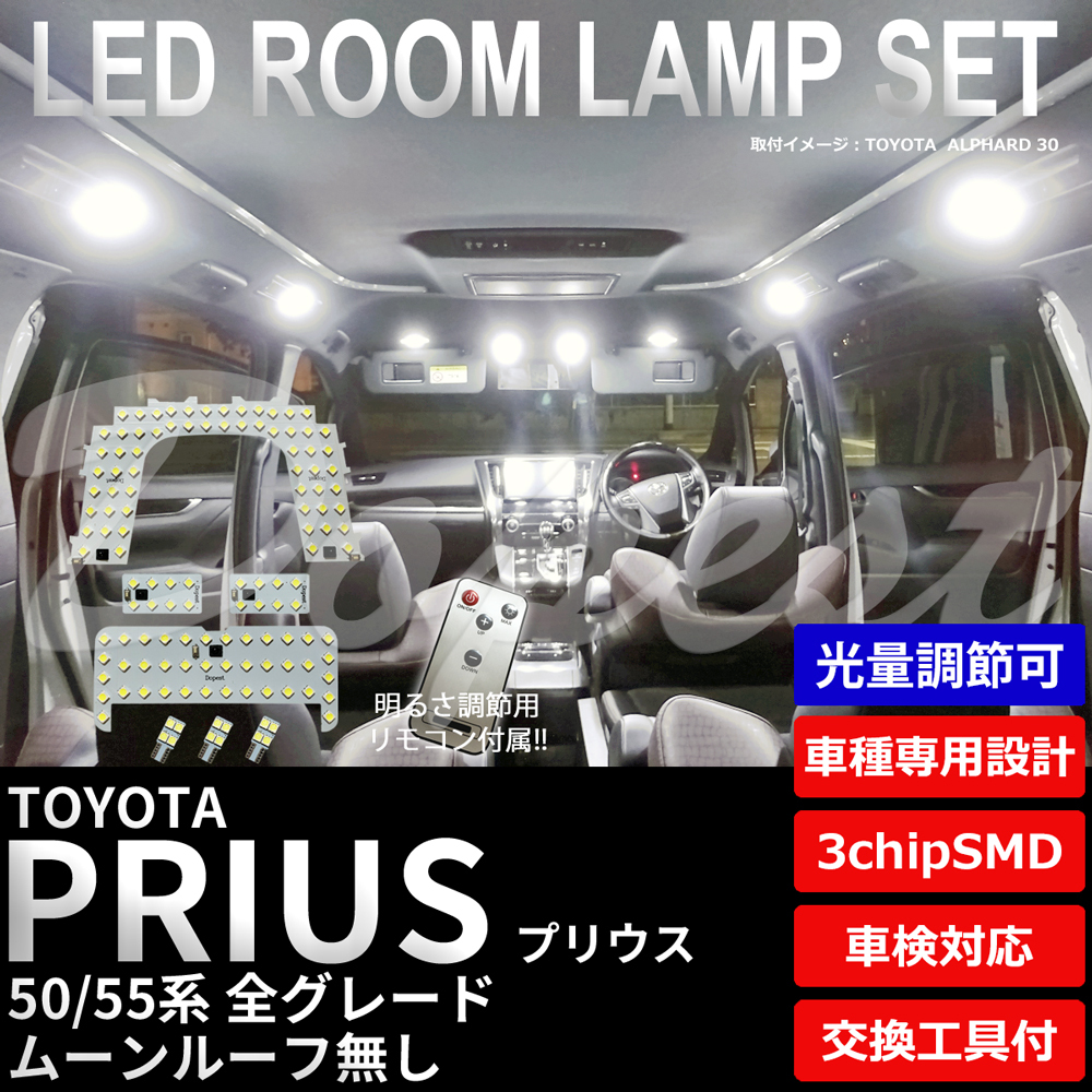 > プリウス/PHV LEDルームランプセット 50系 調光式 ルーフ無し 全グレード 室内灯 6500K純白 専用設計 車検対応 車内灯