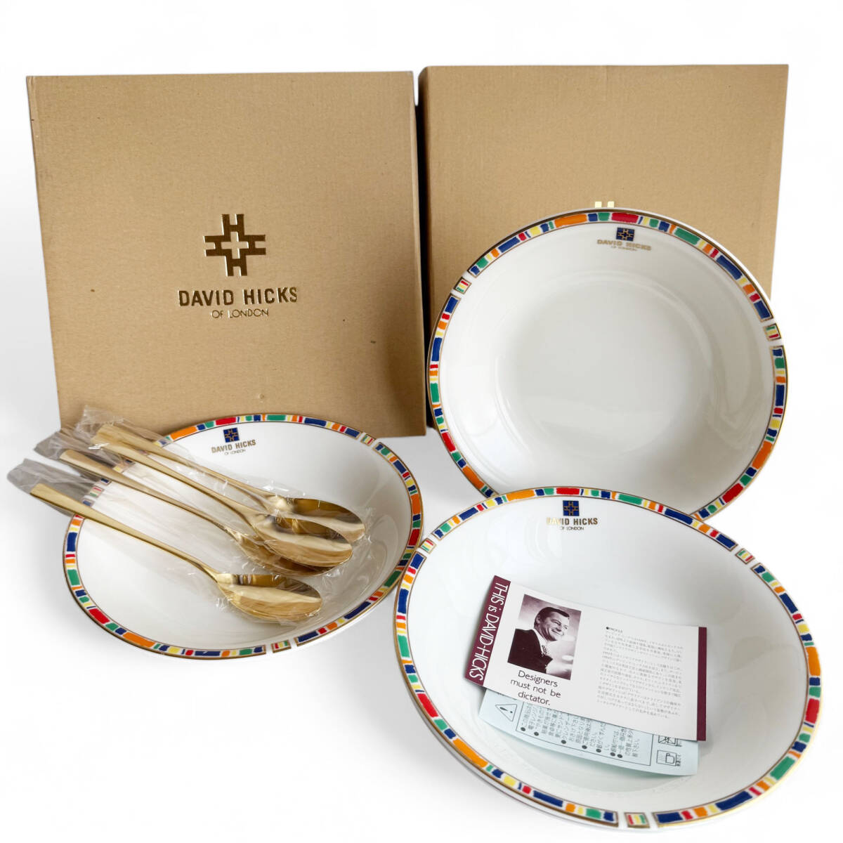 > N7-688 未使用 DAVID HICKS OF LONDON カレー皿 4枚 スプーン付 食器 皿 デービッドヒックス