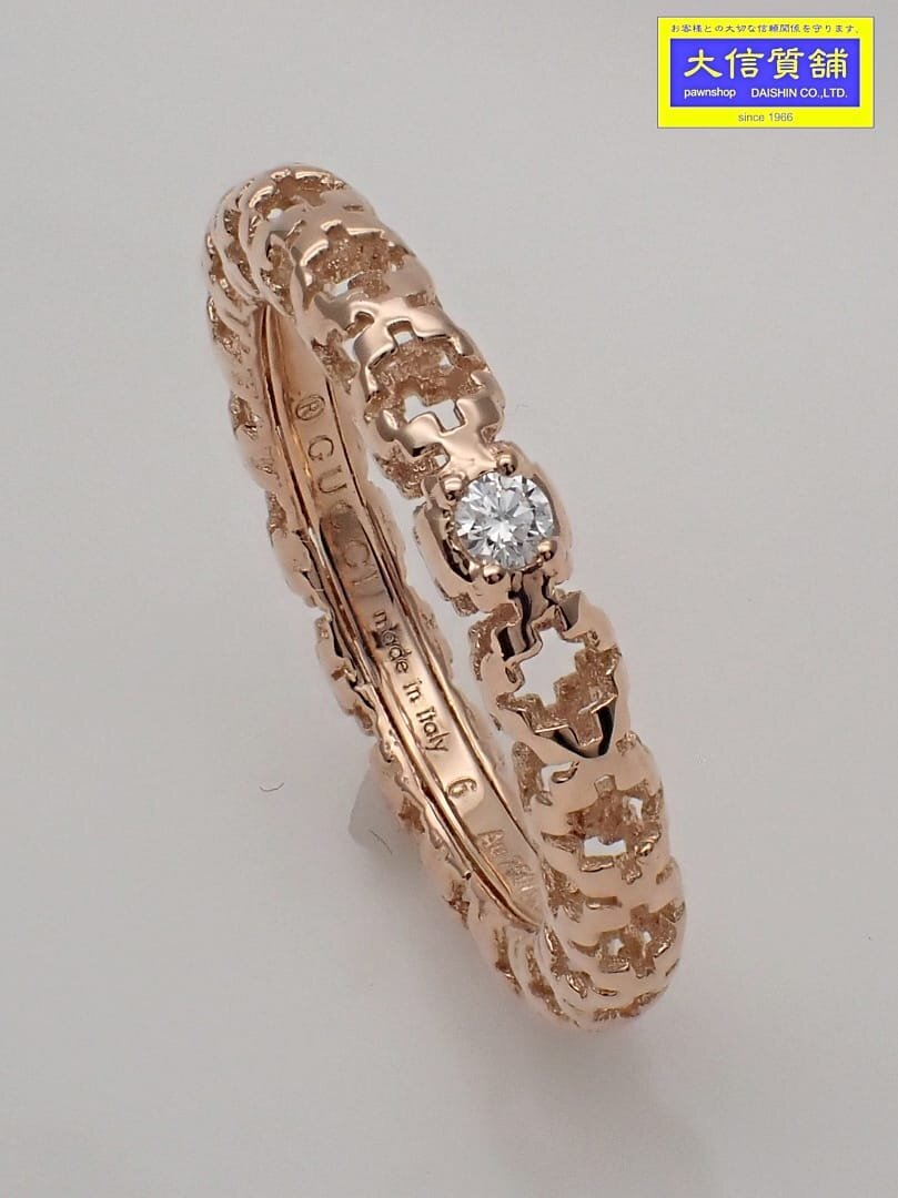 > GUCCI グッチ 750 ピンクゴールド グッチ ディアマンティッシマ ライト ダイヤモンド リング 6号 1.90g 中古A+ 【送料無料】 C-9521