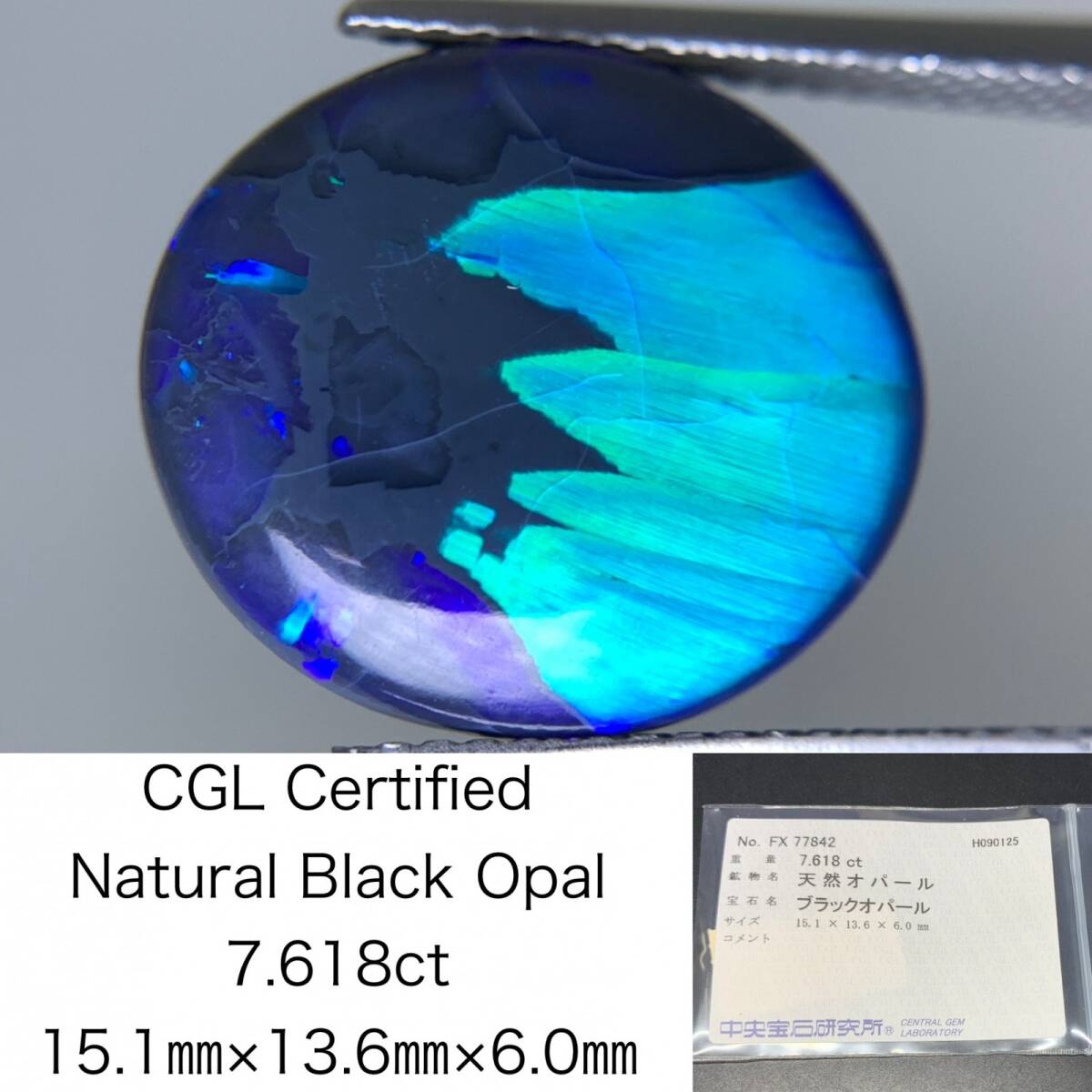 > ブラックオパール 天然 7.618ct カン有り 中央宝石ソーティング付き 15.1×13.6×6.0 ルース( 裸石 ) 6658Y