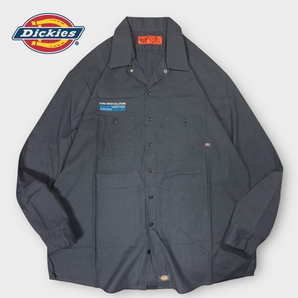 - ★Wピスネーム★GOOD WATER COMPANYロゴ刺繍★Dickies 長袖ワークシャツ size2XLT 上部スナップボタン ディッキーズ 古着 洗濯済み 2498