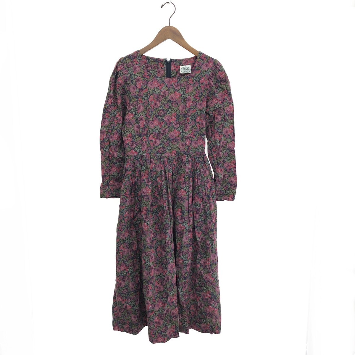 - 良好◆LAURA ASHLEY ローラアシュレイ 花柄ロングワンピース サイズ:11 長袖 パープル レディース