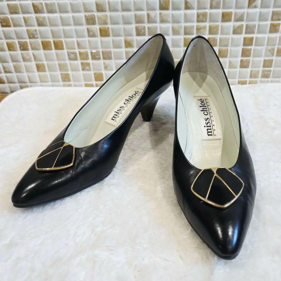 - misschlo ミスクロエ パンプス ゴールドモチーフ 34.5 ブラック