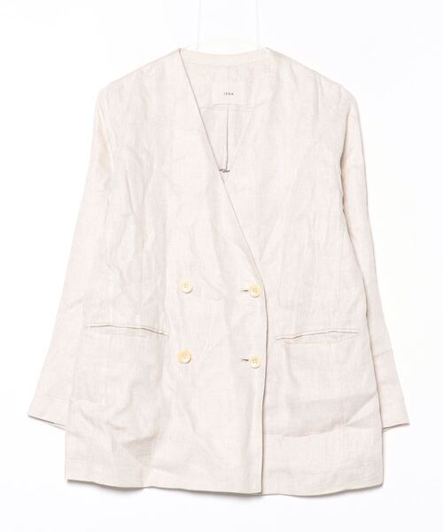 - 「IENA」 ノーカラージャケット 36 ベージュ レディース