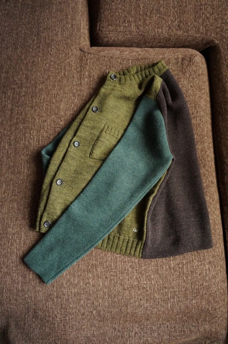 > ★20年購入×3種生地のパッチワーク◎ふっくら柔らかなグリーン系ニット カーディガン★45rpm 45R 即決 セーター