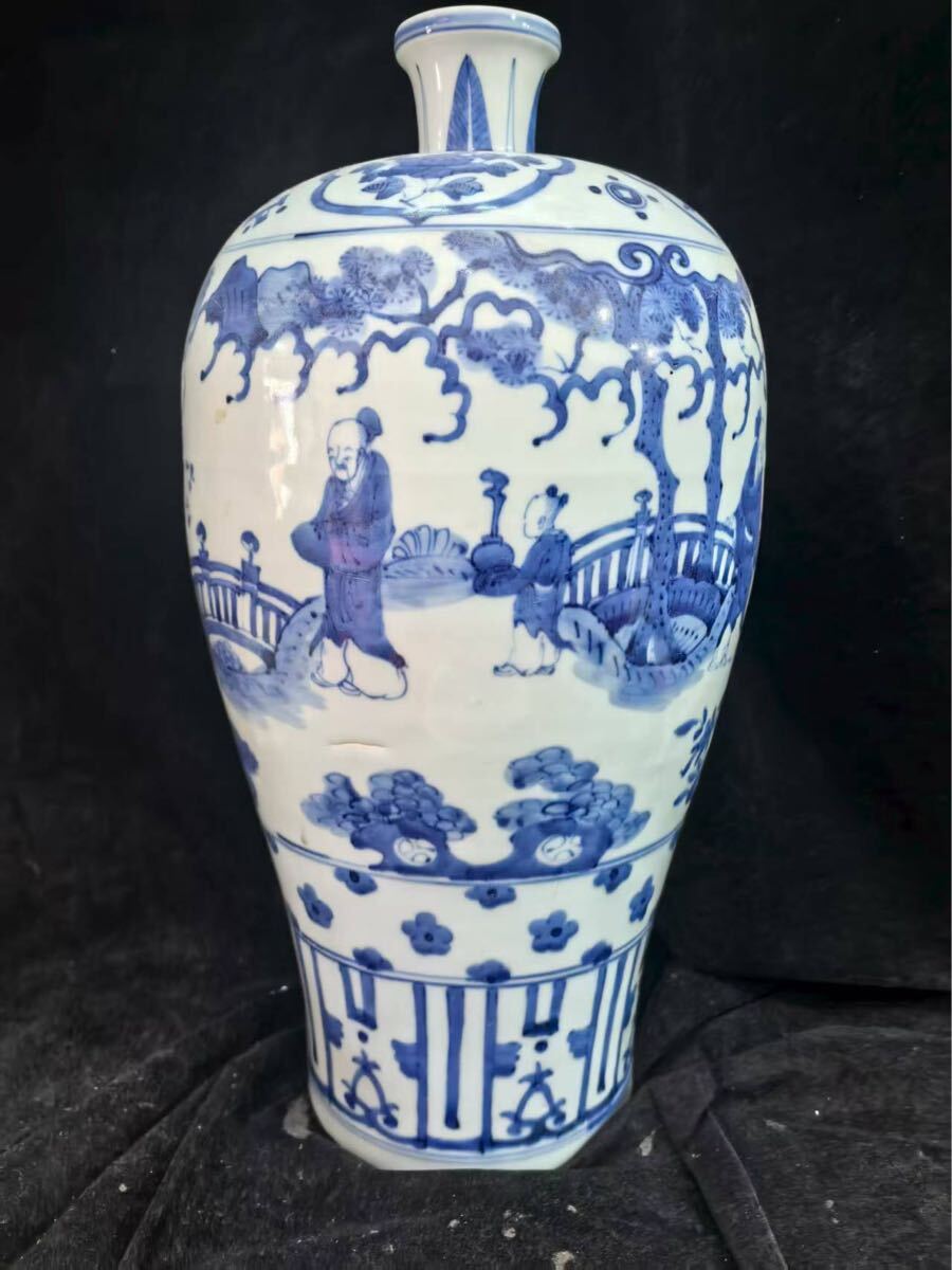 - 【竹華】中国古美術 明時代 青花 人物 花瓶 古玩 骨董 時代物 当時物 唐物 骨董品 時代品 美術品 置物 jr6