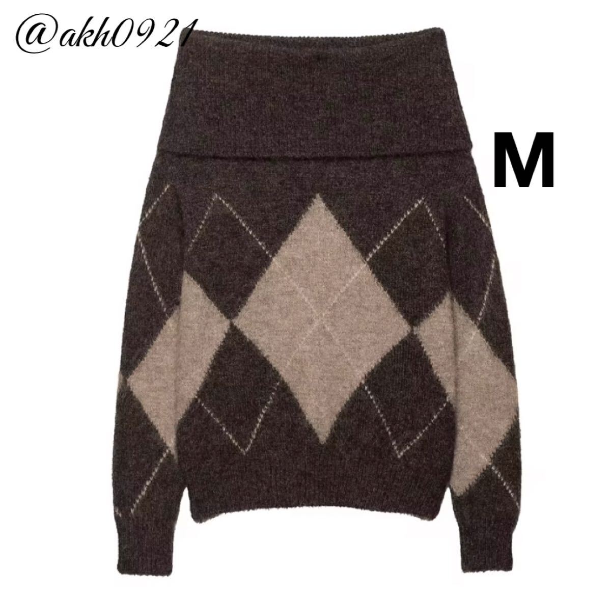 > 新品★秋新作★vintage ヴィンテージ レトロ アーガイル 柄 オフショル ニット セーター トップス Mサイズ レディース★ZARA 好きな方に