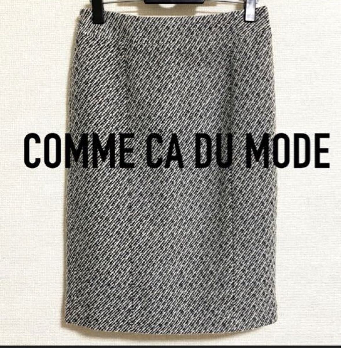 > コムサデモード スカート ブラック系 膝丈 ウール 白黒 スリット 総柄 コムサ タイトスカート オフィス 秋冬