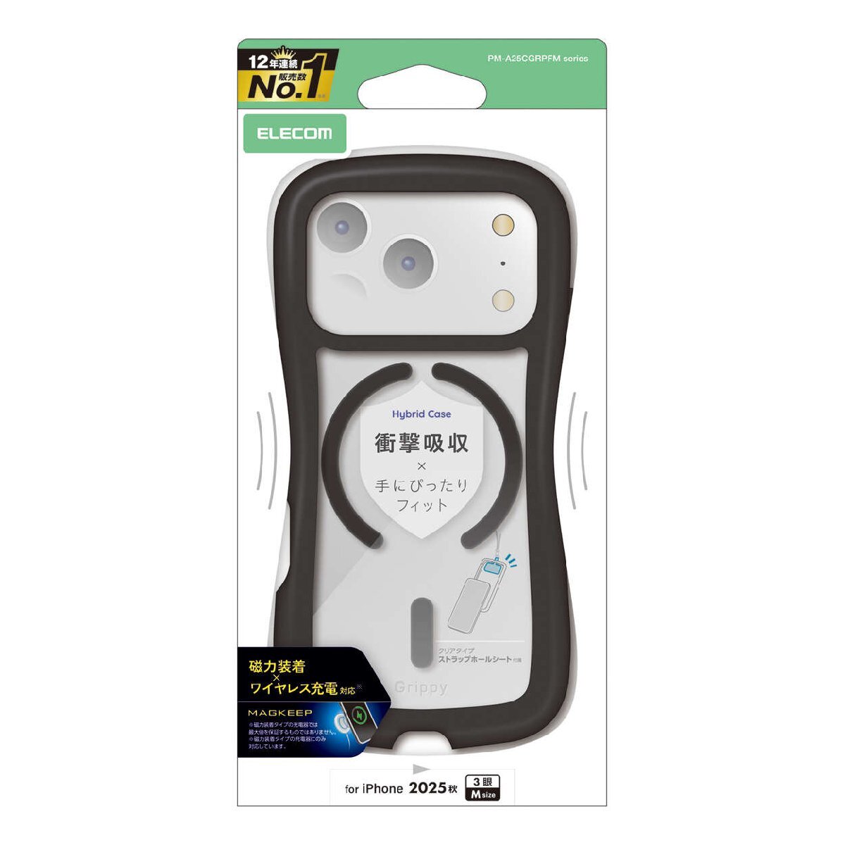 > iPhone17 Pro用ハイブリッドケース [GRIP] 磁力装着タイプのワイヤレス充電器に対応した[MAGKEEP]: PM-A25CGRPFMBK