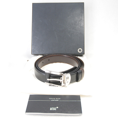 - 未使用品 モンブラン リバーシブル カーフレザー ベルト/ブラック×ダークブラウン シルバー金具 最長113.5cm程【長期保管品】(16622)