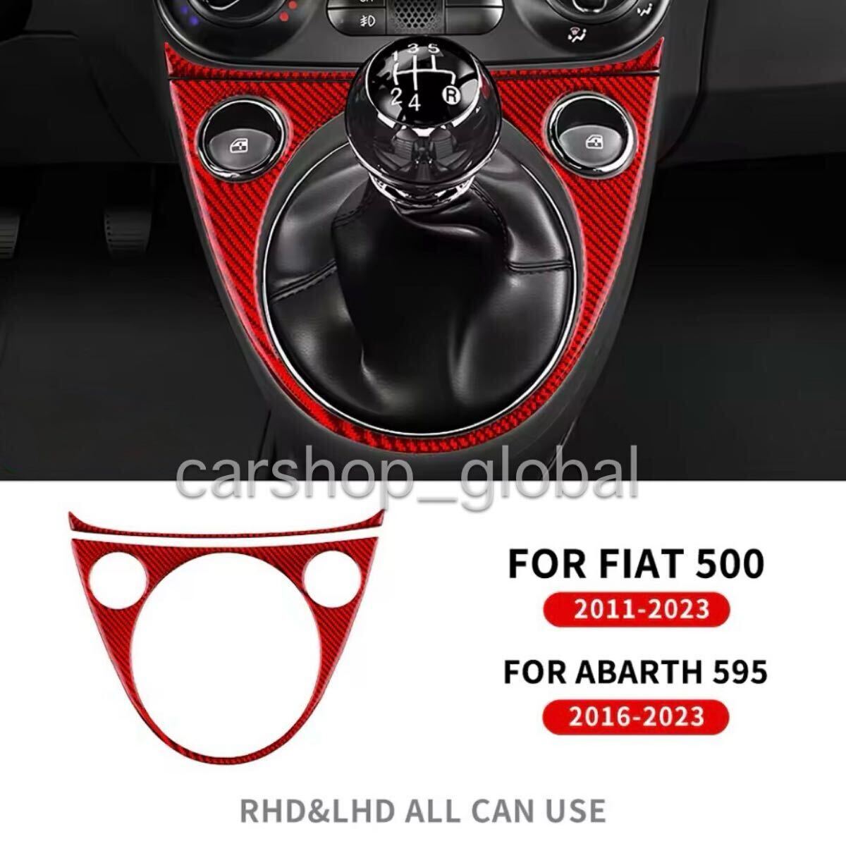 - フィアット 500/アバルト 595対応 レッドカーボン シフトスイッチフレーム パネル コンソールトリム ステッカー デカール 左右ハンドル対応