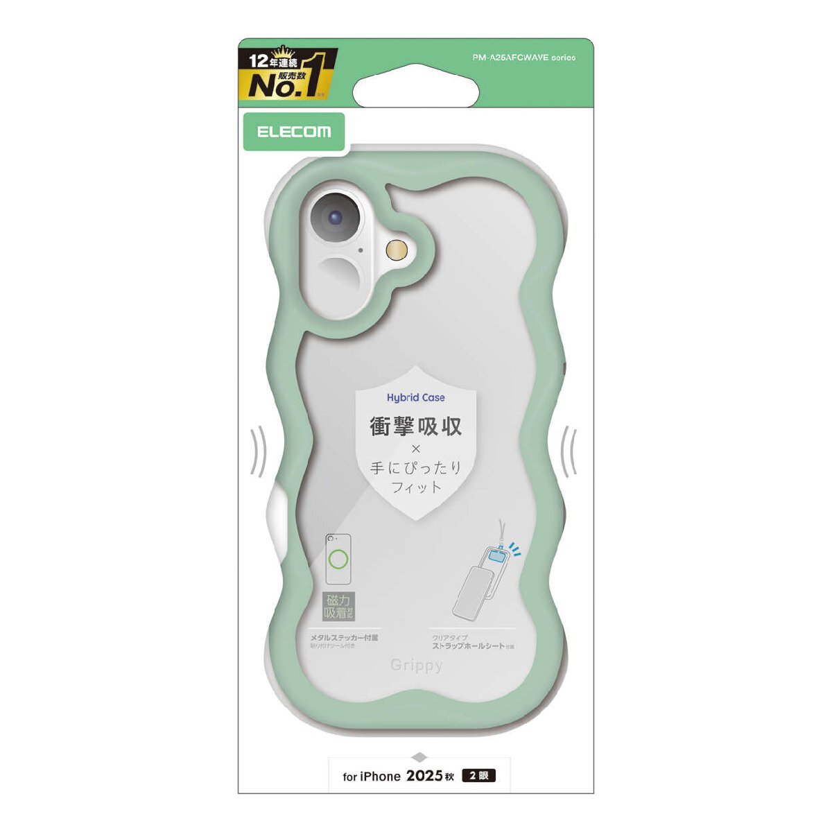 > iPhone17用ハイブリッドケース ウェーブ形状の美しい曲線が手に心地よくフィット、背面クリアパネル仕様: PM-A25AFCWAVEGN