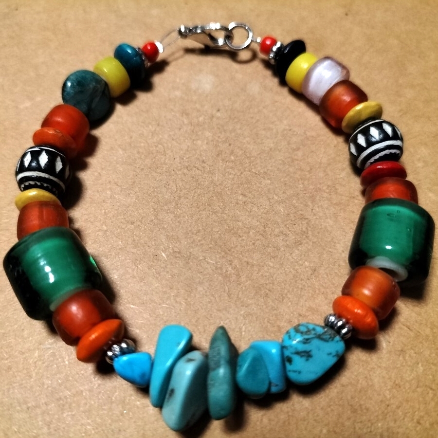 - ヴィンテージ ターコイズ インディアン ブレスレット とんぼ玉 極太 ナバホ オールドビーズ ズニ ターコイズ ネイティブ メキシコ MEXICO