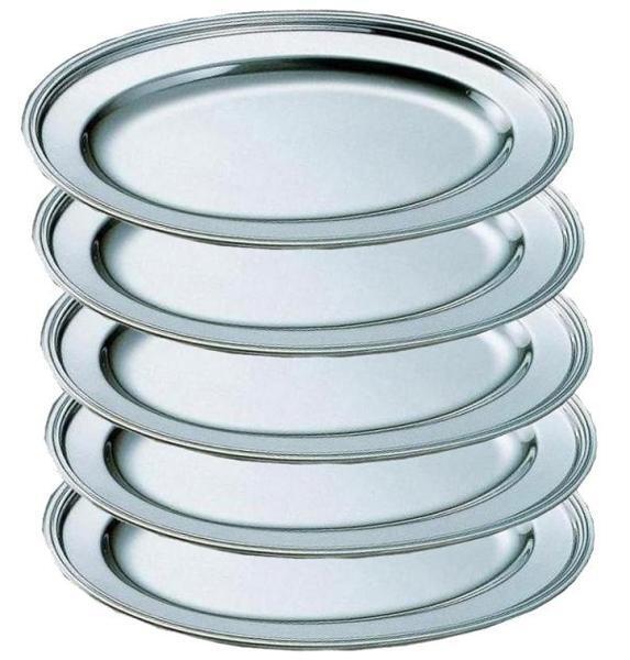> ☆ステンレス 小判皿 巻渕10インチ(約長さ244X幅172mm)5枚様々なお料理の盛り付けに日本製新品