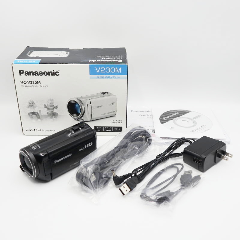 > 美品 Panasonic パナソニック HC-V230M デジタルハイビジョンビデオカメラ ブラック バッテリー等付属品完品 10MP 光学50倍ズーム M09-t022