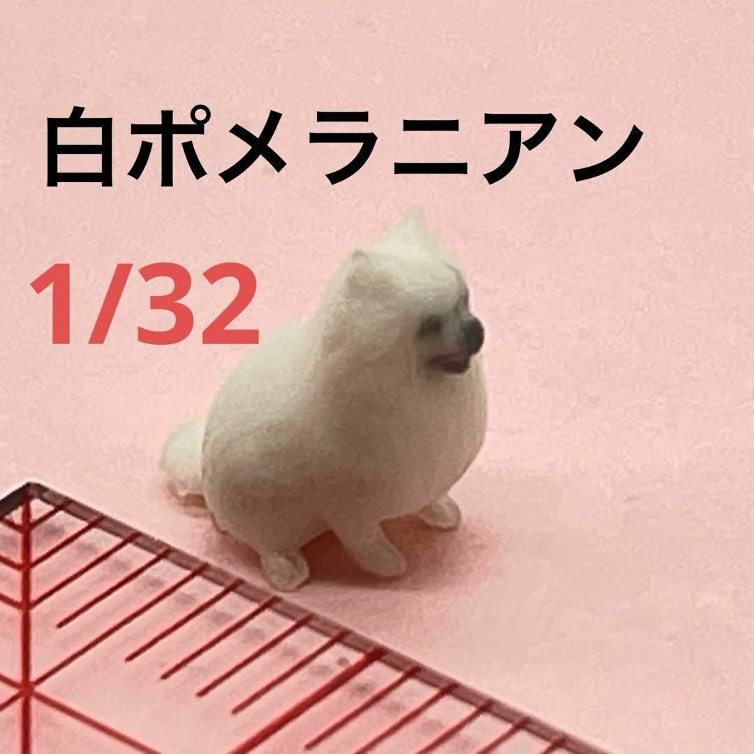 - 1/32 白ポメラニアン フィギュア 犬 ミニチュア 1/64より大 ミニチュアイメージ リアルフィギュア ペット