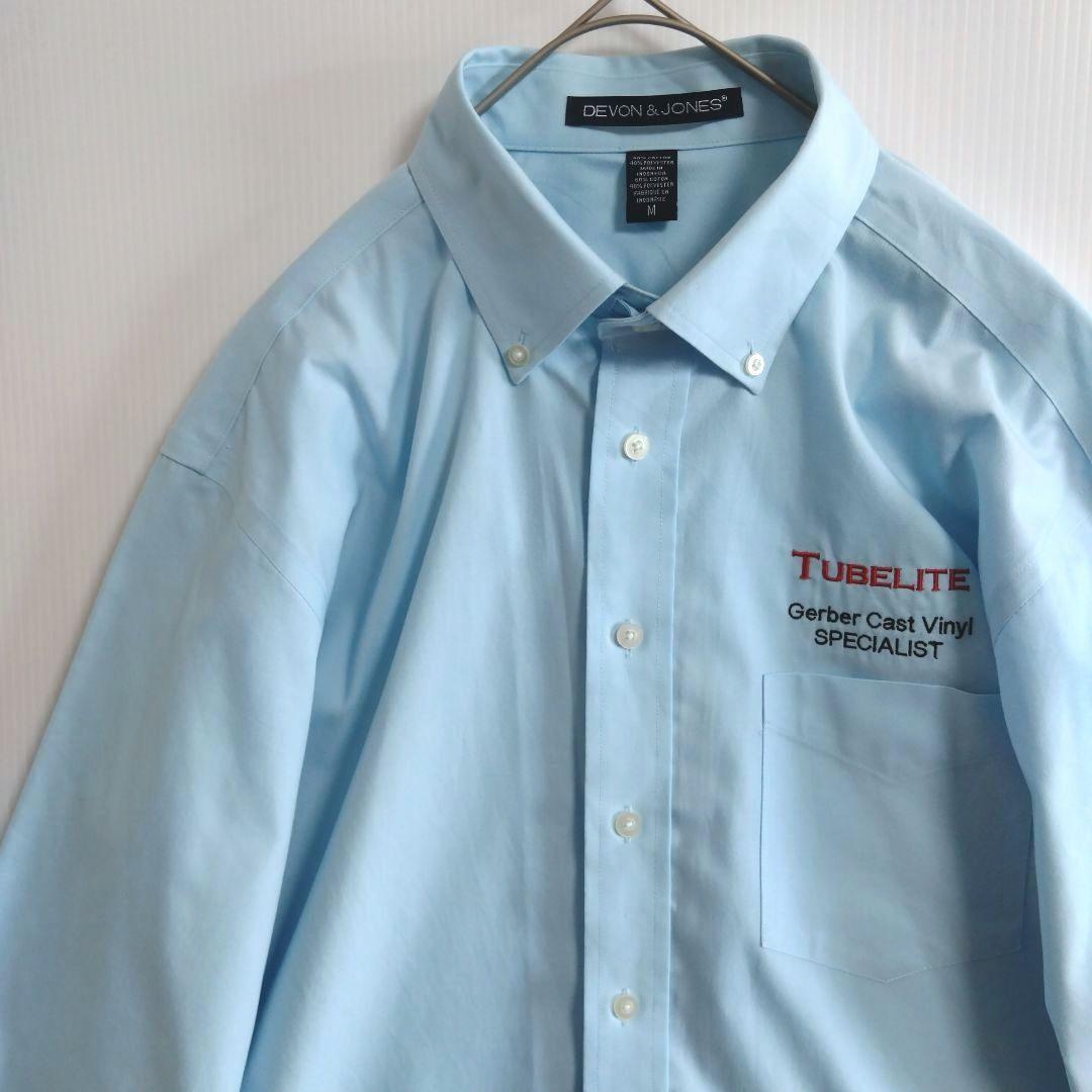 - 2513 DEVON&JONES 長袖ワークシャツ M 薄青 ワイシャツUS古着