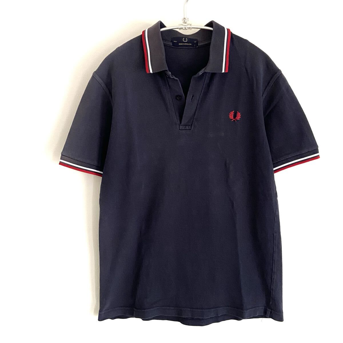 > 【フレッドペリー/英国製】半袖ポロシャツ 鹿の子 刺繍ロゴ【36表記/91CM/ネイビー】衝撃プライス!ヴィンテージフリーク待望★A16