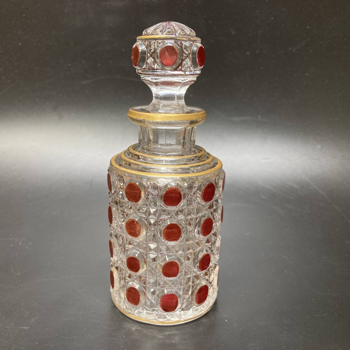 - 【名品】オールド バカラ ディアマン ピエーリー 香水瓶 12.5cm ルビー レッド 赤硝子 ダイヤモンド ギヤマン 切子 アンティーク