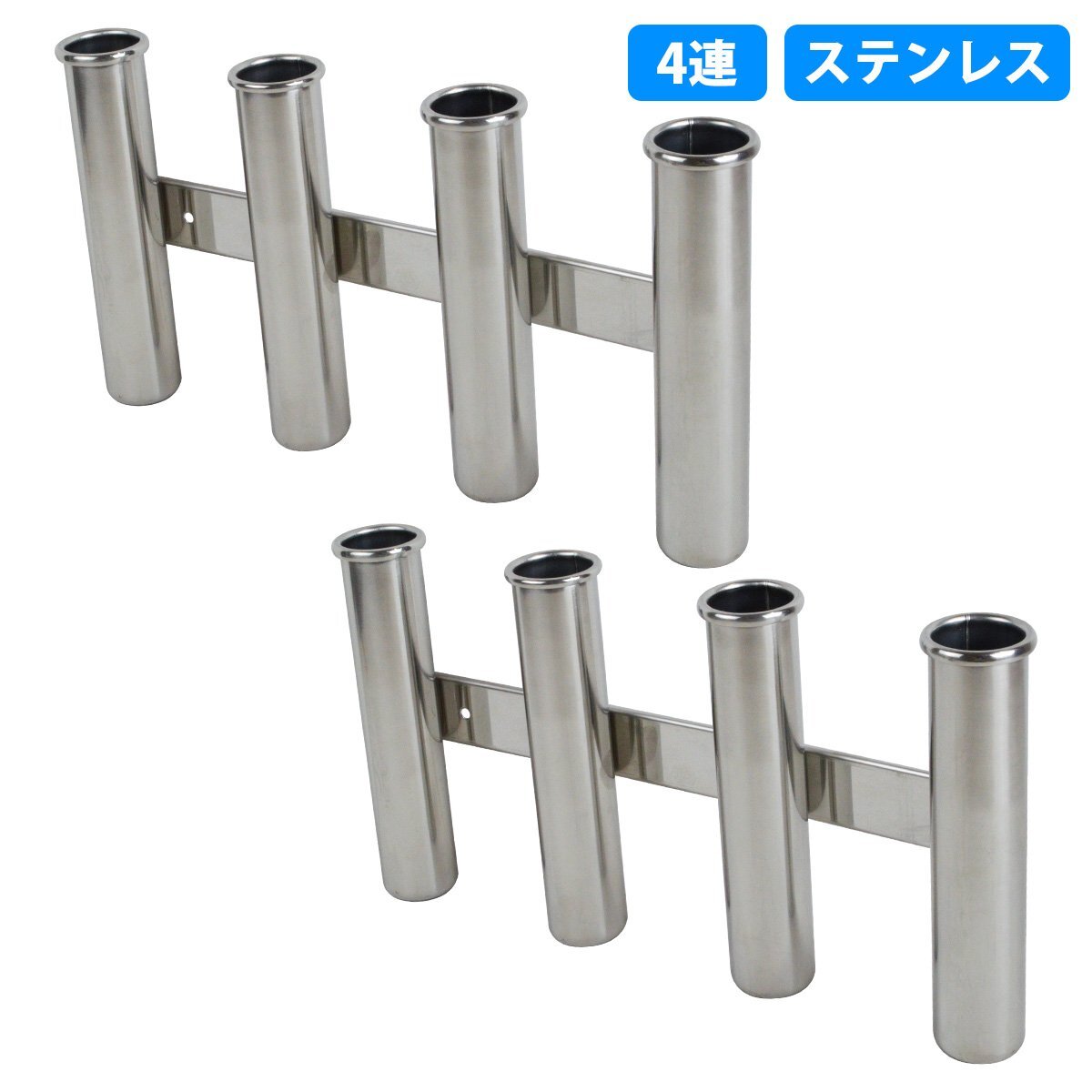 - [4連 2本セット]ステンレス製 ロッドホルダー 釣り 竿 置き 受け 船 ボート 漁船 ロッド スタンド 海 フィッシング 2個 4本