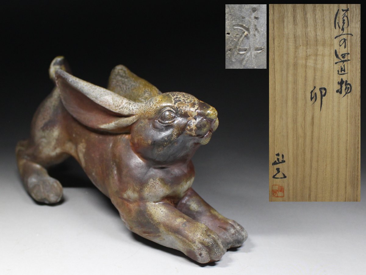 - ◆備前・卯・置物・兎・干支・床置・厄除・縁起物・在印・在銘・共箱◆a9113h