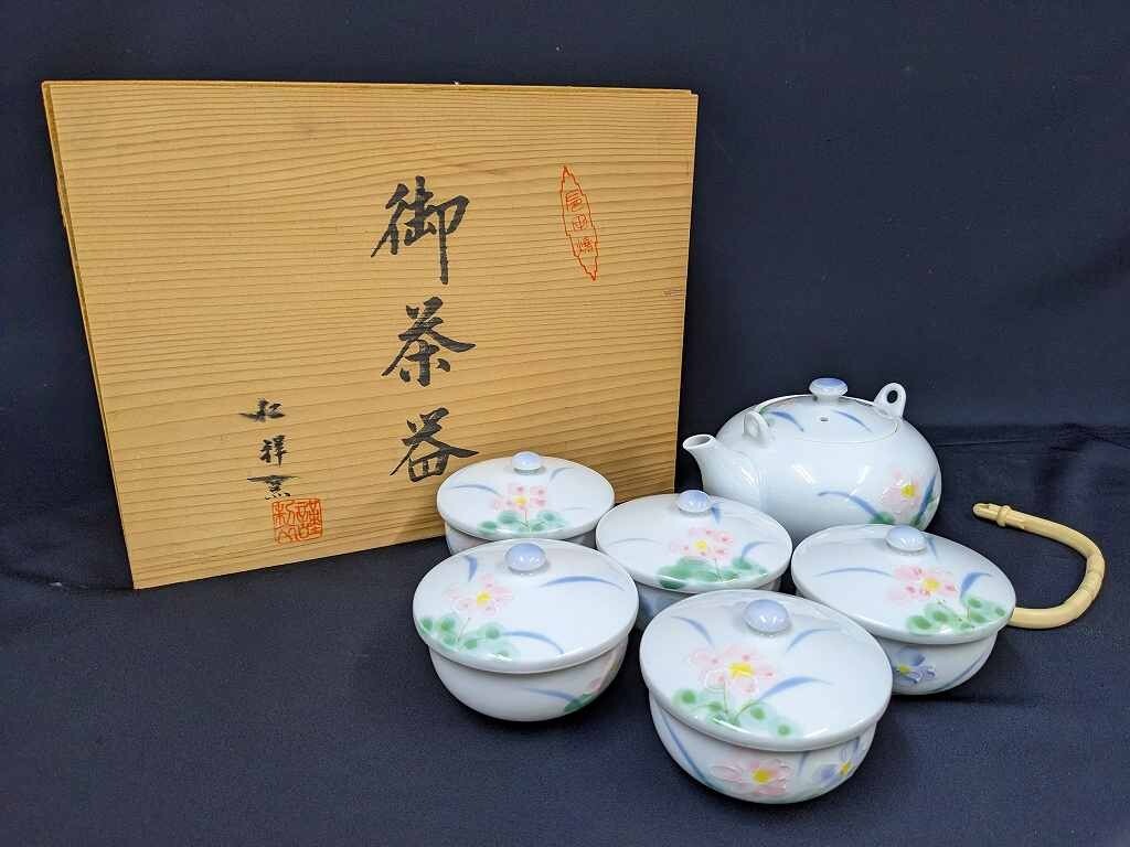 本体サイズ・(急須)幅約15.5cm 高さ約9.5cm 奥行約12cm (湯呑)幅約9cm 高さ約6.5cm