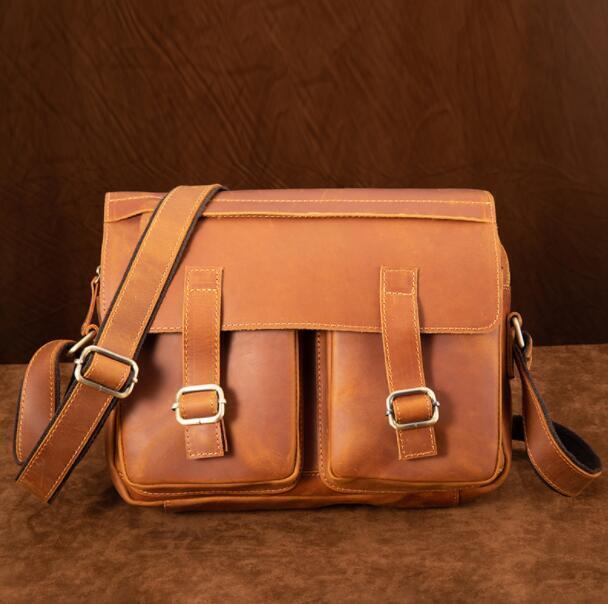 - 高品質/綺麗◆メンズバッグ 本革 レザー ショルダーバッグ 斜め掛けバッグ メッセンジャーバッグ ビジネスバッグ 通勤◆ブラウン