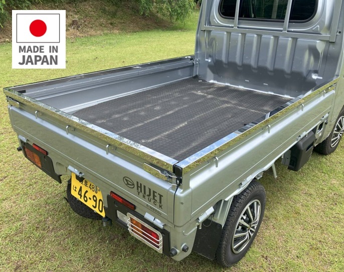 - ダイハツハイゼットトラック 鏡面ステンレス 荷台 あおり アオリコの字 保護カバー 軽トラック サイドリアガード 両面テープ付き簡単取付