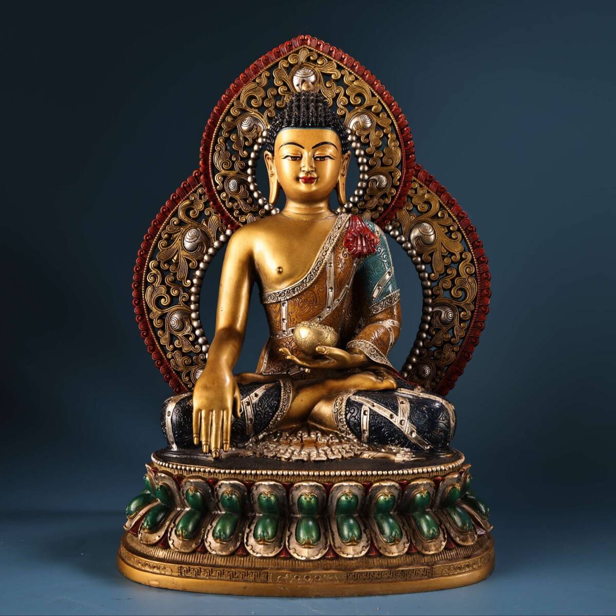 - 【超珍館蔵】銅製 描金 彩繪 釋迦摩尼像 仏像 宗教 仏教古美術 供養品 古賞物 古董品 古美術品 時代物 旧家蔵出 稀少珍蔵品