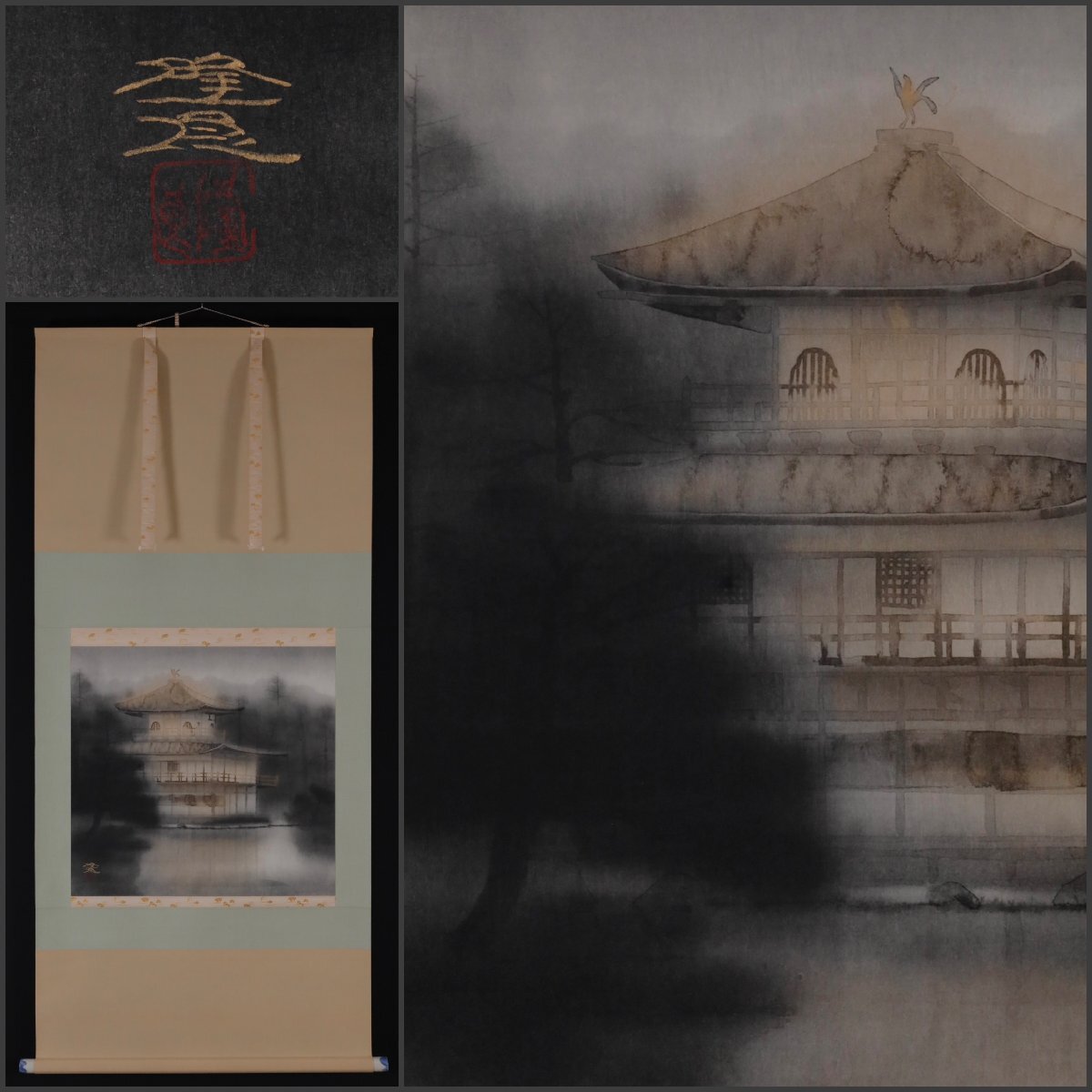 - 【模写】吉】12865 佐藤隆良 金閣寺図 共箱 平山郁夫師事 福島県の人 茶掛け 茶道具 臨済宗 相国寺派 鹿苑寺 仏教 掛軸 掛け軸 骨董品
