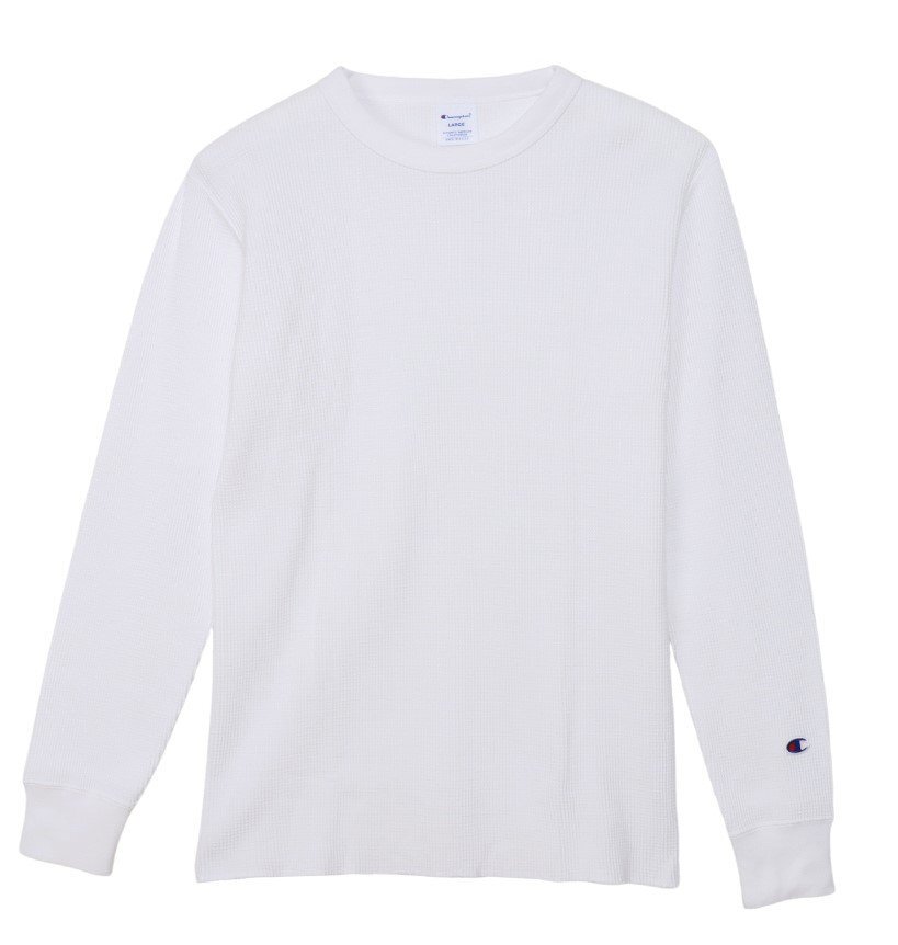 - champion チャンピオン ロングスリーブ サーマル ワッフル Tシャツ コットンUSA 長袖 伸縮 白 XL C3-Y436 メンズ