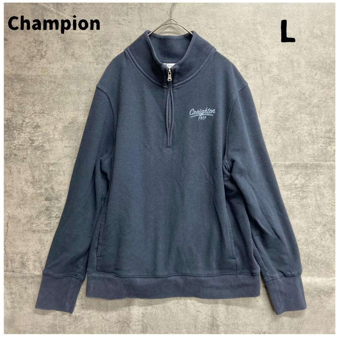 - チャンピオン ハーフジップ スウェット トレーナー 刺繍 紺 L【5696】