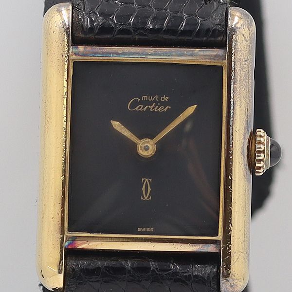 - デッドストック級 国サ保付 稼働 カルティエ マストタンク 3156273 2975913 SV925 黒文字盤 手巻 レディース腕時計 OGH 5645ABC0583700