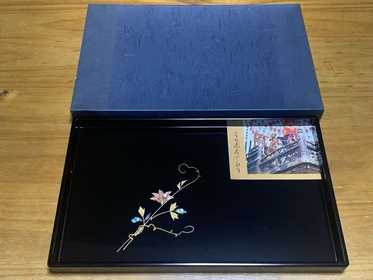 - 高岡漆器 貝入鉄仙 螺鈿 長手盆 黒 42cm×26cm×2.5cm 漆器 角盆 トレー お盆 漆芸 蒔絵 伝統工芸