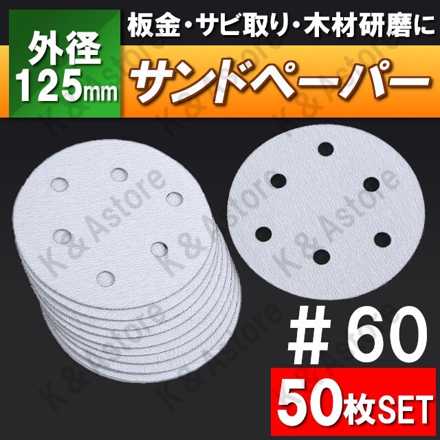- サンドペーパー 紙やすり 125mm サンディングペーパー ヤスリ 電動サンダー グラインダー マジックペーパー マジック式 6穴 60番 #60