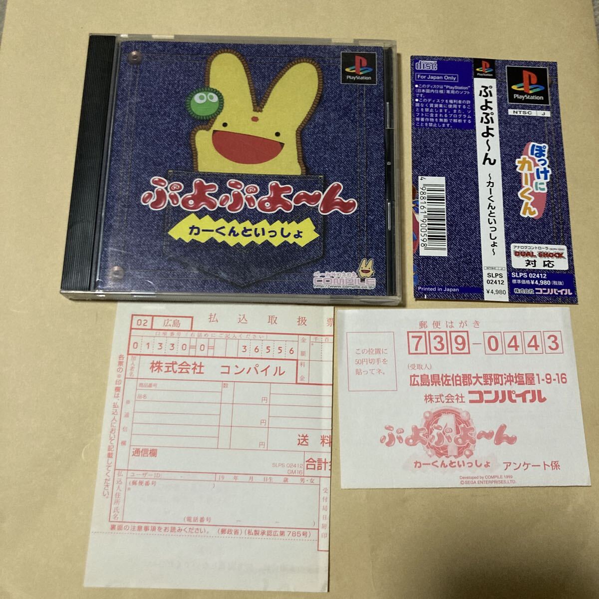 > 送料無料 PS プレイステーション ぷよぷよ〜ん カーくんといっしょ 帯 ハガキ等 ぷよぷよーん PS1 PlayStation PUYOPUYO Car-kun to issho