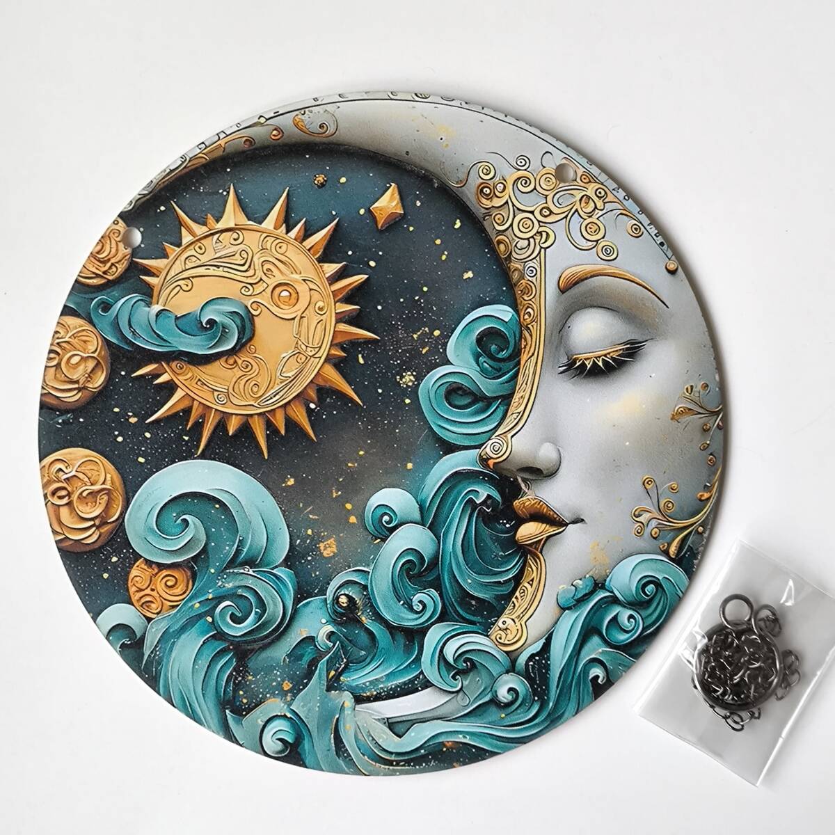 - 【美しい三日月と太陽】アクリルプレート 飾り サンキャッチャー 紐付き オブジェ お洒落 壁や窓辺の飾りに◎◎