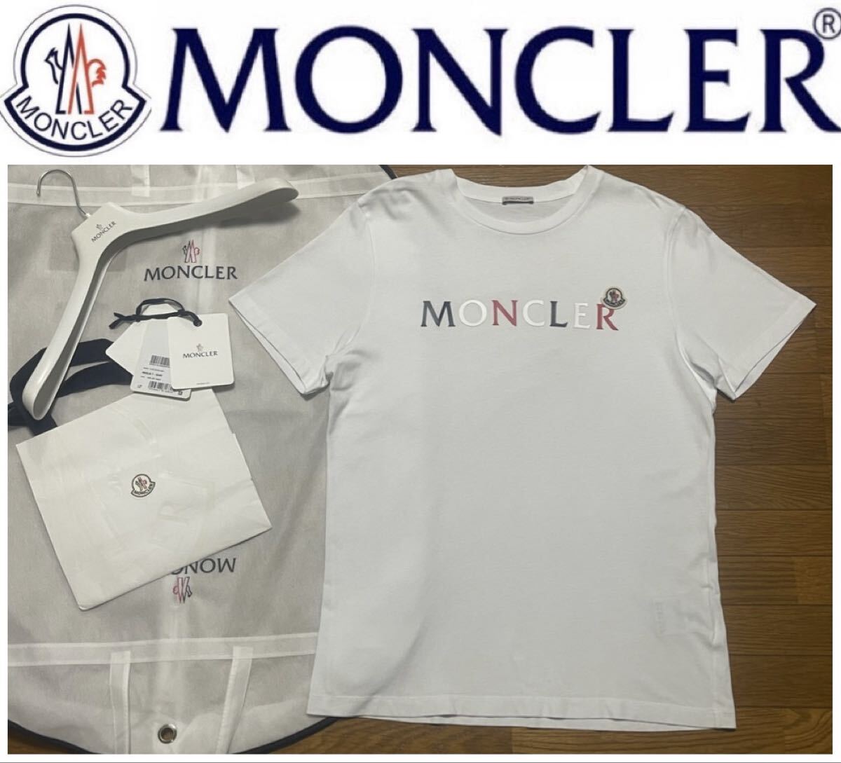 > 極上♪MONCLER 国内正規モンクレールビッグロゴ 半袖 Tシャツ L相当 クリーニング済