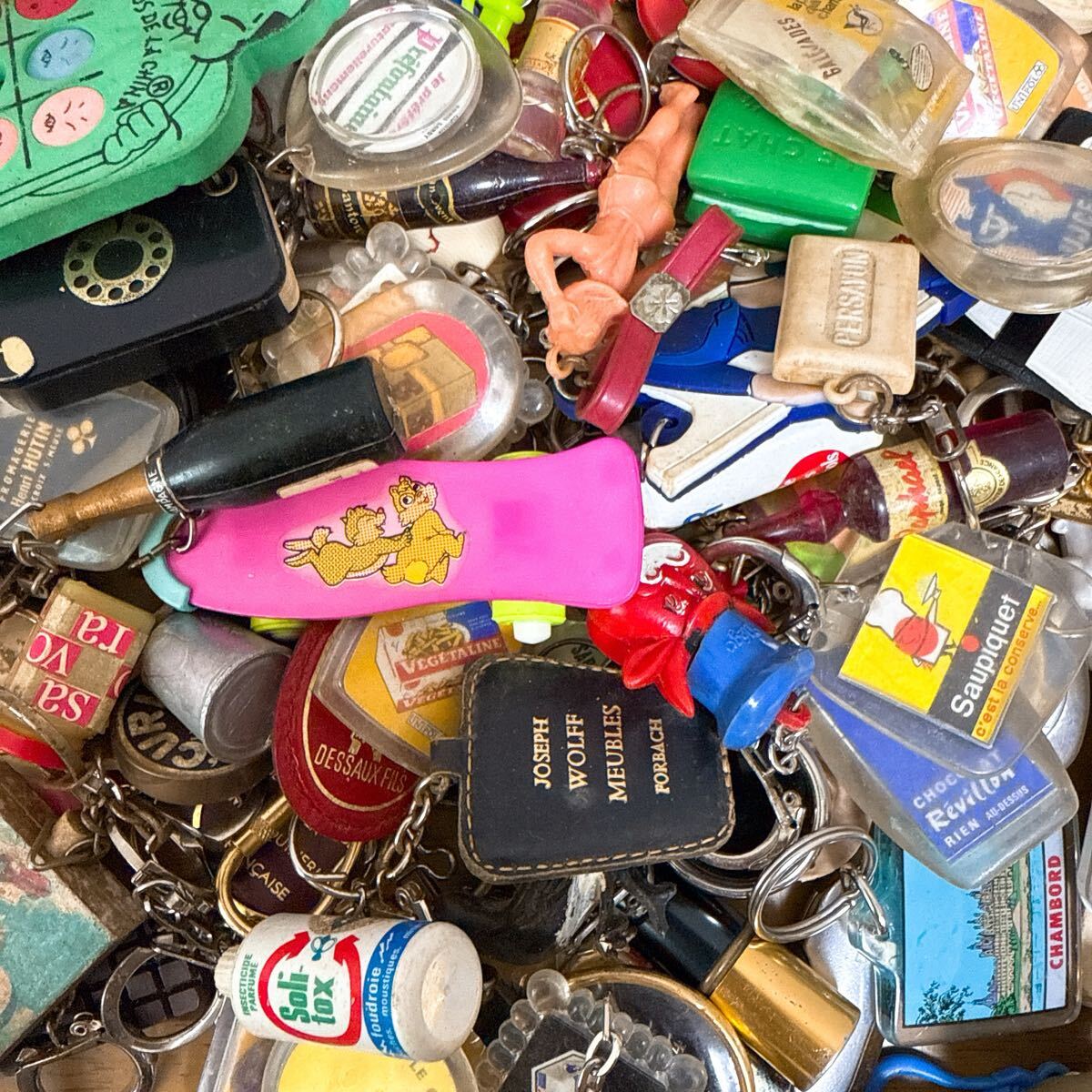 - P596 100個 フレンチキーホルダー フランス ヴィンテージ ビンテージ アンティーク 大量 まとめ まとめ売り 処分 雑貨 ブルボン 卸売 小物
