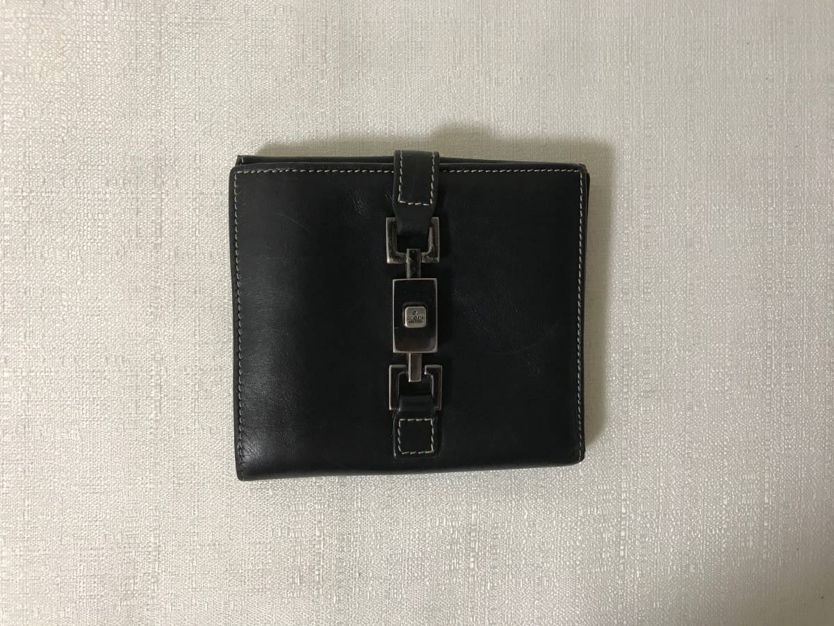 - 本物グッチGUCCI本革オールレザージャッキーライン二つ折りサイフ財布札入れ黒ブラックビジネストラベル旅行メンズレディース