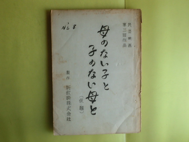 > 【母のない子と子のない母と(仮題)】 1952年民芸映画台本 製作・新教映株式会社 表紙、小口全体に不良 キズ・経年焼け