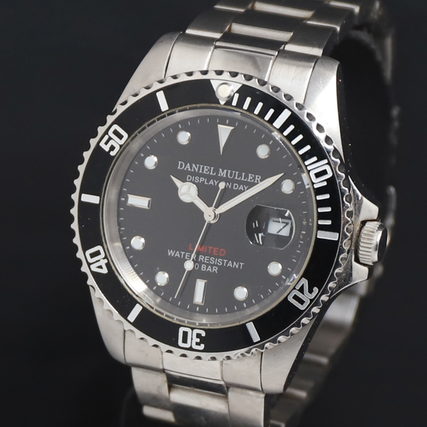 - QZ ダニエル MULLER リミテッド DM-2018 黒文字盤 デイト メンズ腕時計 2000000 NSK KRK