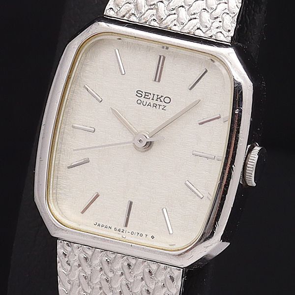 - 良品 セイコー QZ 5421-5060 シルバー文字盤 スクエア レディース腕時計 NKG