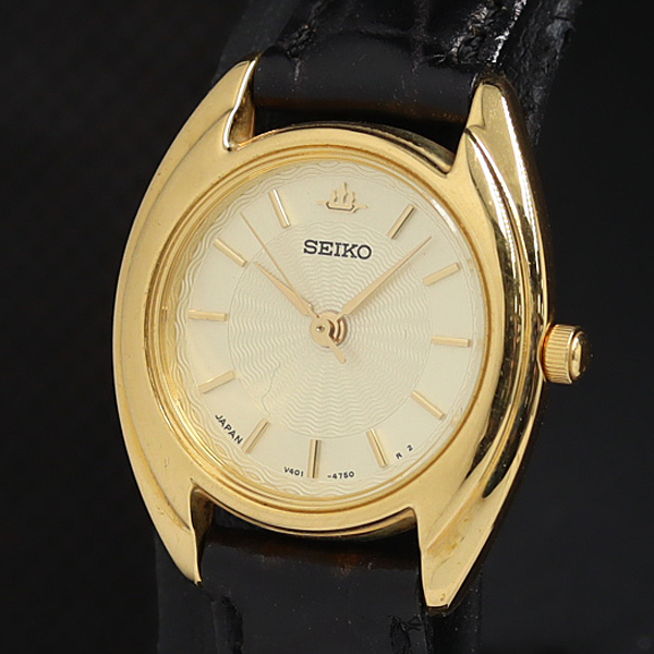 - 稼動 良品 セイコー V401-1590 QZ ゴールド文字盤 レディース腕時計 AOY 2000000 NSK