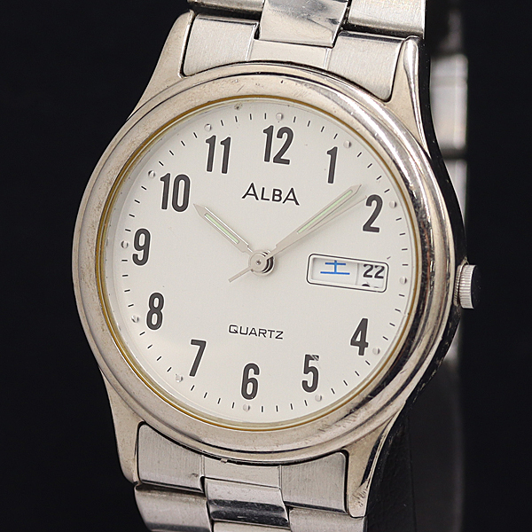 - 稼動 セイコー アルバ QZ シルバー文字盤 デイデイト V733-X030 メンズ腕時計 OGH 2000000 NSK