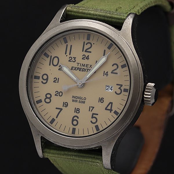 - 稼働 タイメックス QZ エクスペディション アイボリー文字盤 カーキ メンズ腕時計 KMR 2000000 NSK