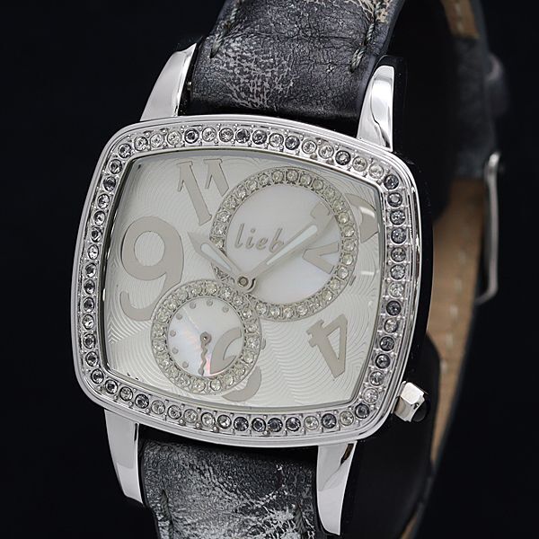 > 稼動 良品 アビステ リエべ QZ ダイヤベゼル 石付 スクエア ホワイトシェル文字盤 メンズ腕時計 INB 2000000 NSK