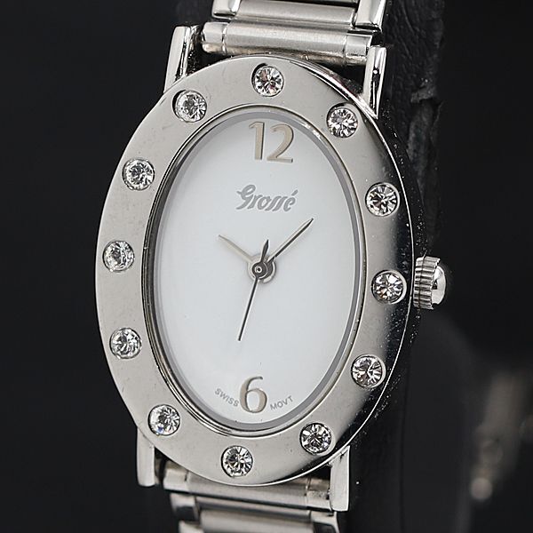 - 稼動 QZ 美品 グラシエ 石付 100203 白文字盤 レディース腕時計 KRK 2000000