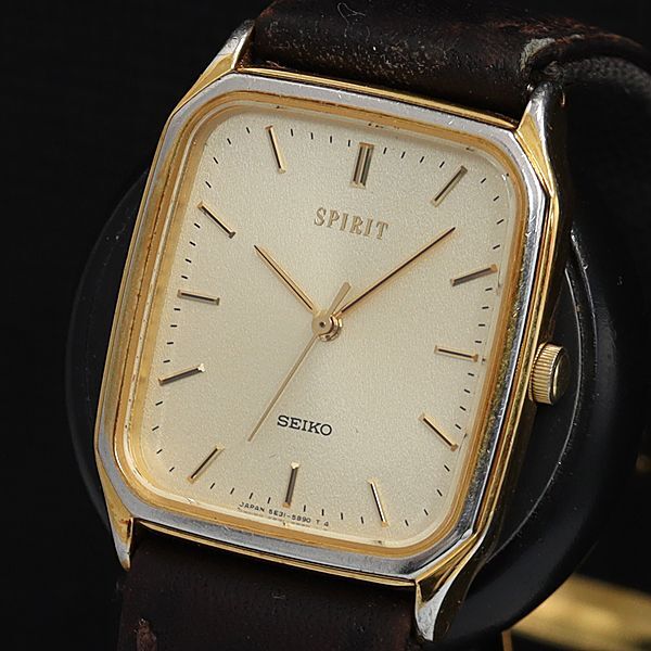 - 稼働 セイコー スピリット 5E31-5B50 QZ ゴールド文字盤 スクエア メンズ腕時計 OSW 2000000 NSK